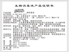 使用方法:所有环境表面、器皿、设备等均需用洗涤剂刷洗且冲洗干净后,用该产品喷洒或擦拭待消毒部位即可,用量约为30~50ml/平方米,无需再次冲洗,安全、卫生、简便,对设备没有腐蚀性,安全高效。 小型容器及设备可以用该产品浸泡3~5min后取出晾干即可。