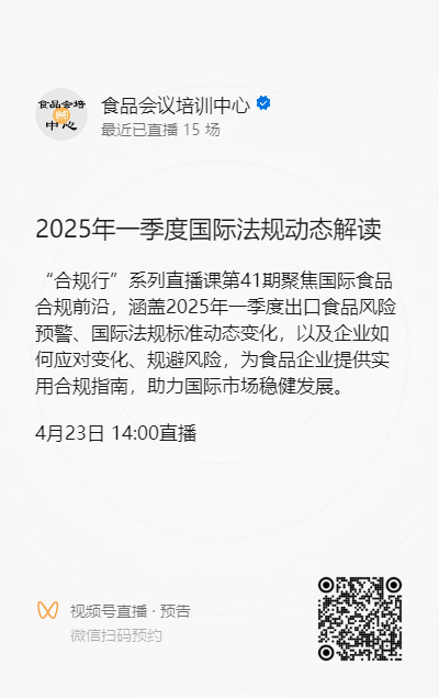 4月23日14:00-15:00,免费直播【2025年一季度国际法规动态解读 & 出口预警案例】。