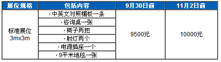 3M*3M标准展位(含2套餐饮票?nbsp;
