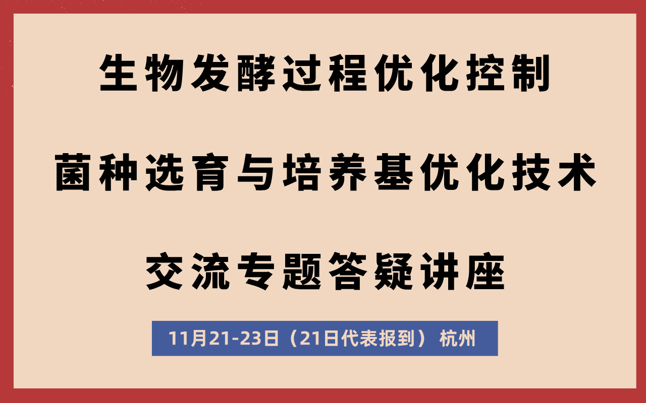 生物发酵过程优化控制、菌种选育与培养基优化技术交流专题答疑讲座(杭州·线下)