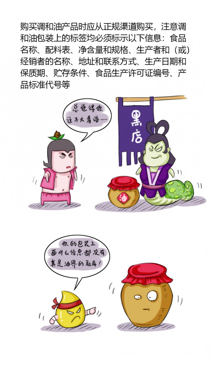 “食用植物调和油的标签标识可以注明产品中大于2%脂肪酸组成的名称和含量。”说白了,以后消费者就可以通过标签上的信息,快速挑选出适合自己的调和油。