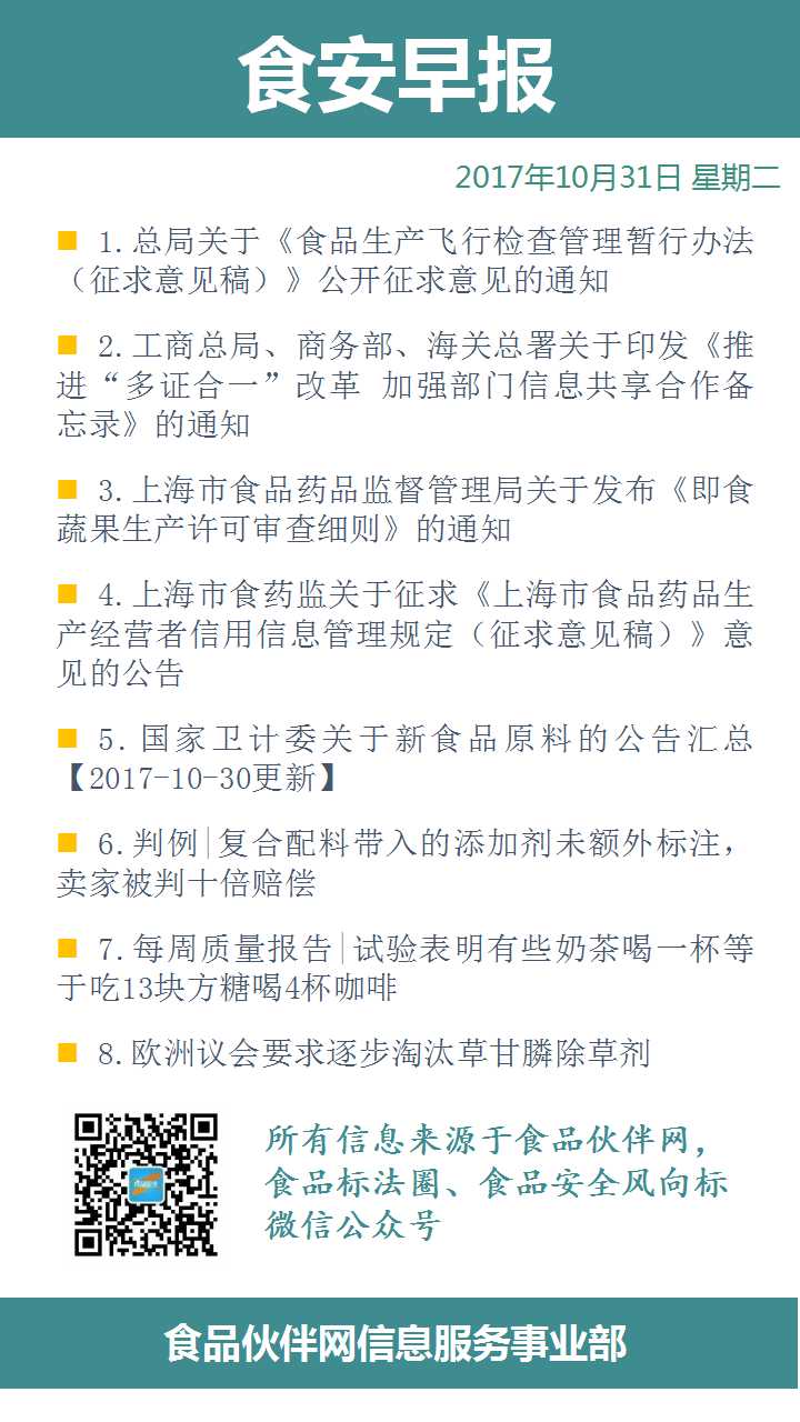 食安早报2017.10.31