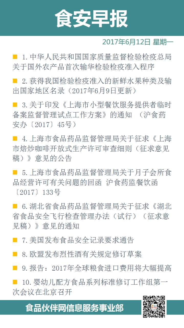 食安早报2017.06.12