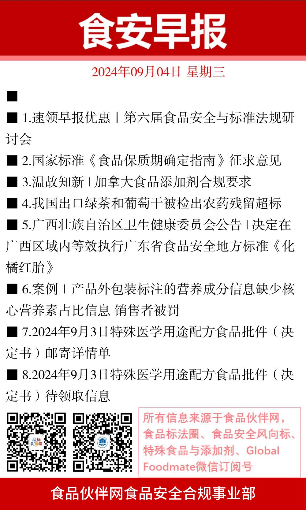 1. 速领早报优惠丨第六届食品安全与标准法规研讨会