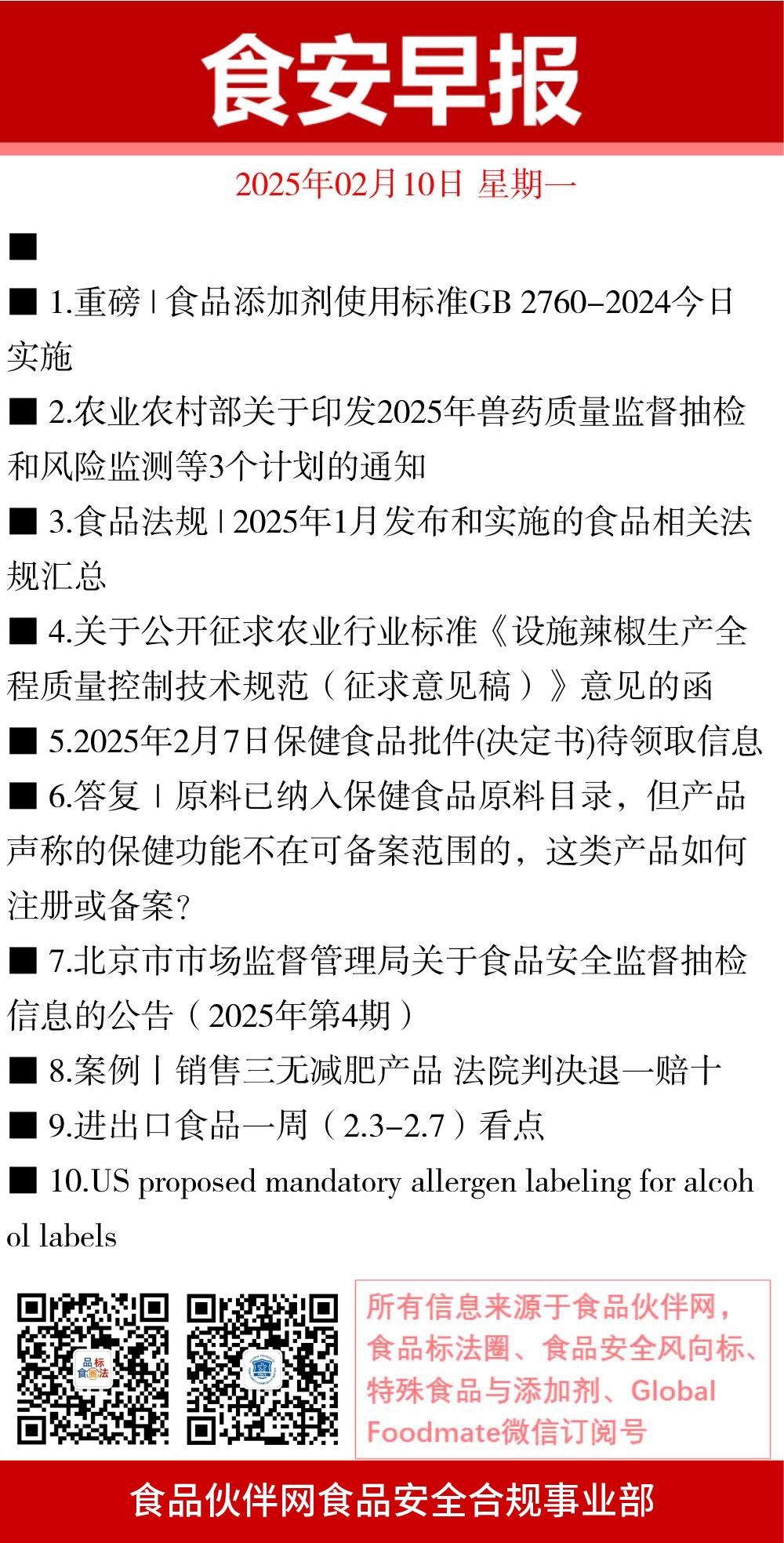 3. 食品法规 | 2025?月发布和实施的食品相关法规汇怺/p>