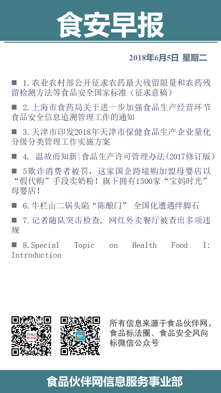 1. 农业农村部公开征求农药最大残留限量和农药残留检测方法等食品安全国家标准(征求意稿)