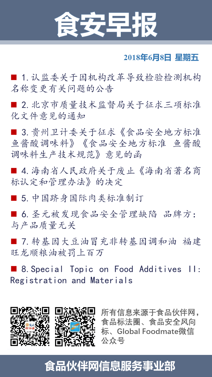 3. 贵州卫计委关于征求《食品安全地方标准 鱼酱酸调味料》《食品安全地方标准 鱼酱酸调味料生产技术规范》意见的函 https://mp.weixin.qq.com/s/s5ez_BIUb07FAKBQ48m79w