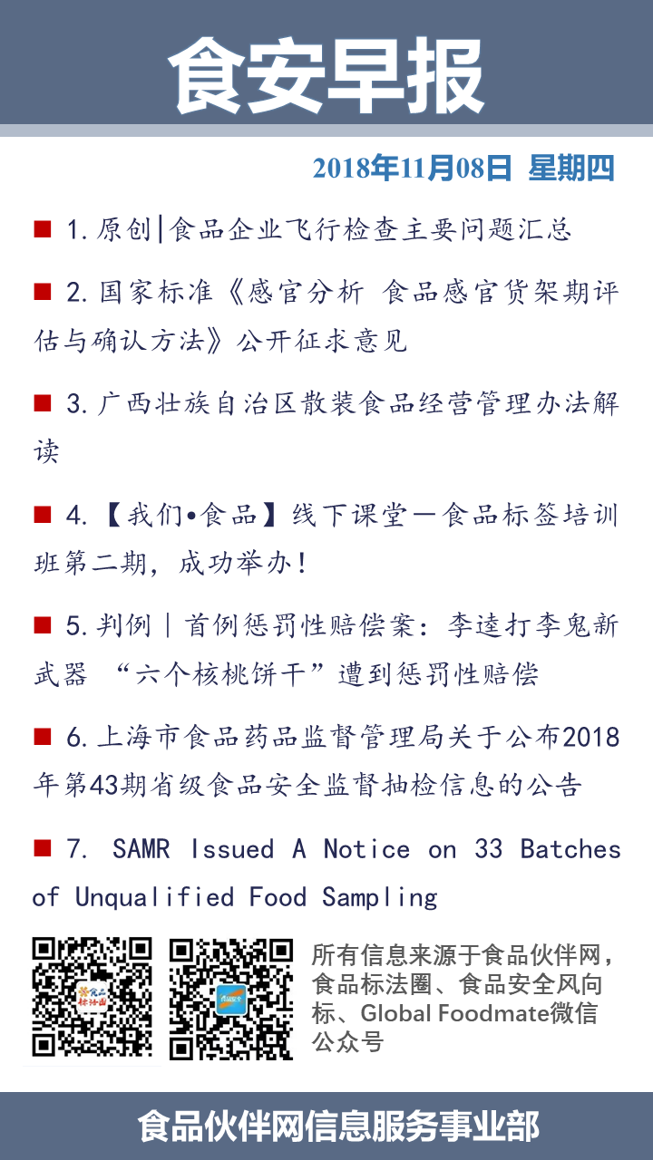 7. SAMR Issued A Notice on 33 Batches of Unqualified Food Sampling