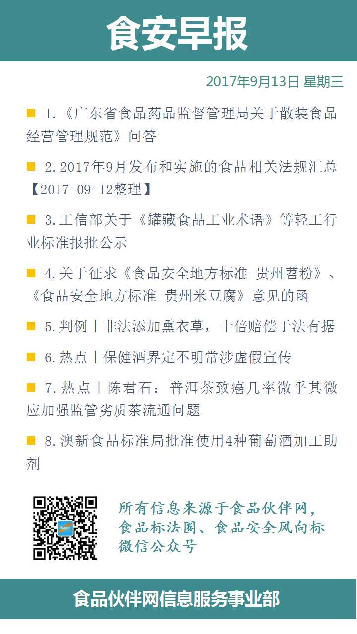 食安早报2017.09.13
