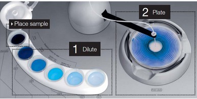 此接种仪可实现5 x 1/10th 连续梯度稀释,并自动涂布菌液。一个培养皿即可实现计数的原始菌液浓度范围可达30 ~107 CFU/mL。