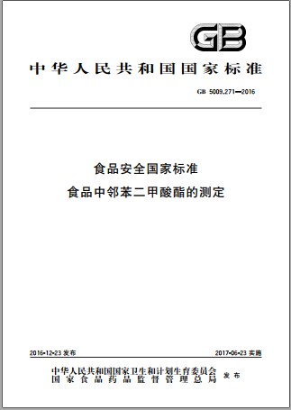 GB 5009.271-2016 食品安全国家标准 食品中邻苯二甲酸酯的测定 英文版 已有译文已打五折