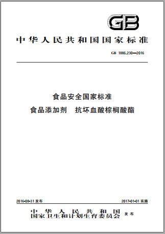 GB 1886.230-2016 食品安全国家标准 食品添加剂 抗坏血酸棕榈酸酯 英文版 已有译文已打五折