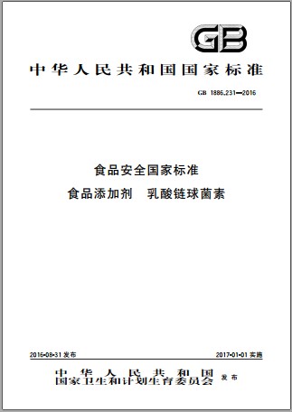 GB 1886.231-2016 食品安全国家标准 食品添加剂 乳酸链球菌素 英文版 已有译文已打五折