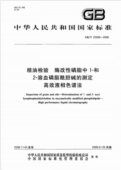 GB/T 22506-2008 酶改性磷脂中1-和2-溶血磷脂酰胆碱的测定 英文版 需联系翻译