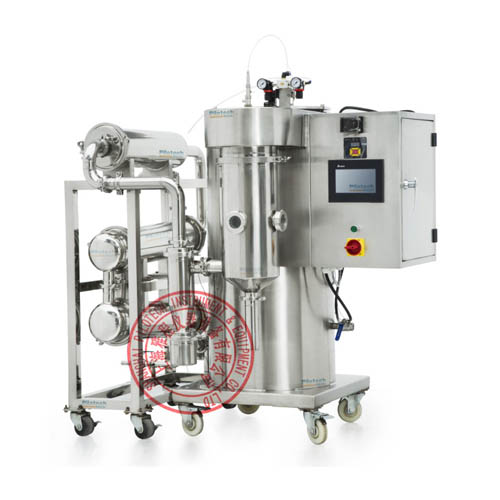 3)可以解决有些原料生产中毒气体污染问题,有些物料或溶剂气化时会产生有毒气体,惰性气体封闭循环实验室喷雾干燥机将使这些产生的有毒气体密闭在系统之中,并在后道工序收集,可减少环境污染,有利于环境保护。