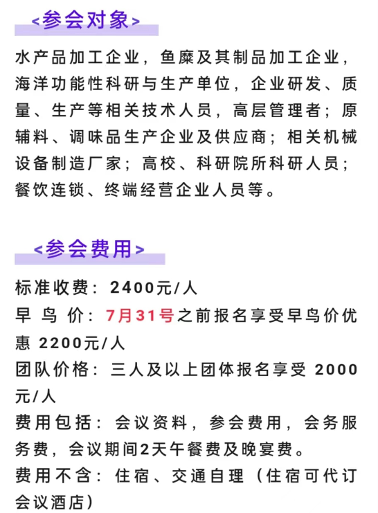 8月10-11日,食品伙伴网将继续携手行业权威专家及领航企业,组织举办“2022第三届水产品加工技术研讨会”。从水产行业发展现状趋势、水产加工技术、创新开发、品质改良、质量安全、冷链保鲜等多方向多维度出发,进行面对面的交流探讨,助力我国水产加工行业不断转型升级,助推水产加工行业市场朝多元化、高产高质方向发展。