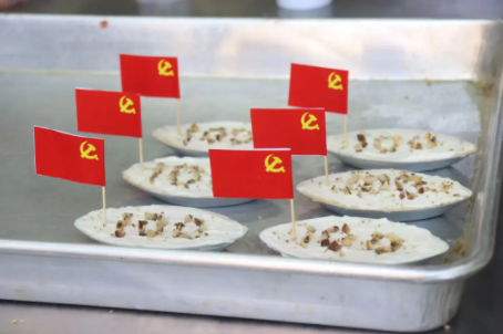 四方和平:我们的灵感一方面来源于今年是中国共产党成立100周年,另一方面绿豆糕的起源是因为我们祖先在当年为了祈求平安,然后用绿豆糕来庆祝端午节,端午节的寓意也是以祈福为主,我们在设计的时候再融进共产党成立100周年,用这款绿豆糕也是祈福我们国家能够繁荣昌盛,国泰民安。