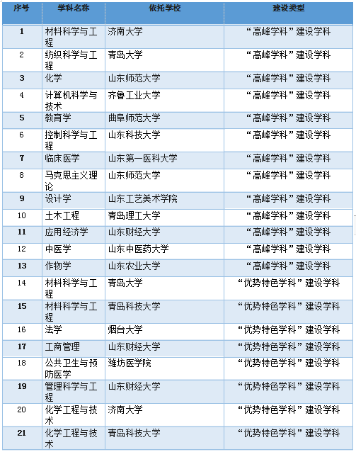为贯彻落实省委省政府关于推进全省高等教育高质量发展的决策部署,根据《山东省人民政府办公厅关于印发<山东省高水平大学建设实施方案>的通知》(鲁政办字〔2020〕79号)《山东省教育厅 山东省财政厅关于印发山东省高等学校高水平学科建设实施方案的通知》(鲁教高发〔2020〕1号)安排,省教育厅组织开展了山东省高水平大学和高等学校高水平学科(以下简称“双高”)建设遴选工作。经过两轮评审,结合我省产业发展需求,确定省属高校“高水平大学”建设单位15个、“高水平学科”建设项目51个;参照省属高校学科建设标准,从驻鲁部属高校和省委党校中,确定“高水平学科”建设名单: