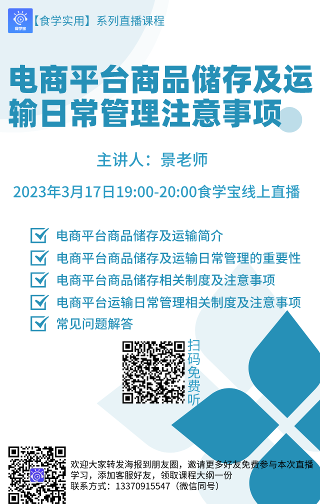 课程题目:【食学实用】电商平台商品储存及运输日常管理注意事项