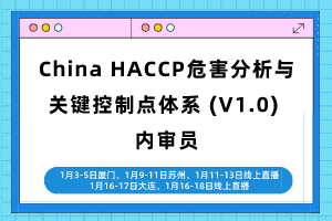 China HACCP危害分析与关键控制点体系 (V1.0) 内审员(线上网络直播)