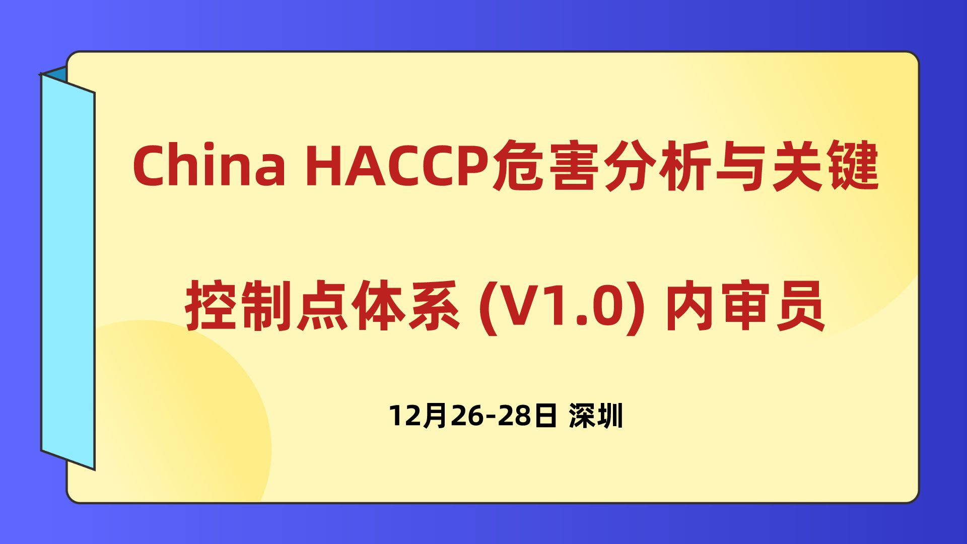 China HACCP危害分析与关键控制点体系 (V1.0) 内审员(深圳)