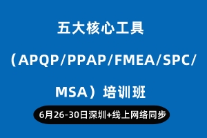 五大核心工具(APQP/PPAP/FMEA/SPC/MSA)培训班(深?线上网络同步(/a>培训时间 2023-06-26 2023-06-30结束 培训地点广州币/span> 福田区八卦路514栋(线上线下同步,全年均有排期) |