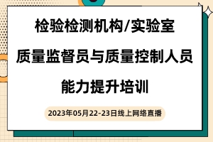 ?月】检验检测机?实验室质量监督员与质量控制人员能力提升培训(线上网络直播(/a>培训时间 2023-05-22 2023-05-23结束 培训地点中国线上网络直播(具体详情咨询客服) |