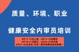 【6月】质量、环境、职业健康安全内审员培训(济南+线上网络直播)