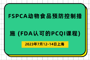 FSPCA动物食品预防控制措施(FDA认可的PCQI课程?-上海培训时间 2023-07-12 2023-07-14结束 培训地点上海(具体详情咨询客服) |