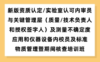 新版资质认定/实验室认可内审员与关键管理层(质量/技术负责人和授权签字人)及测量不确定度应用和仪器设备内校员及标准物质管理暨期间核查培训班(广州/天津/上海/南京/杭州/青岛/长春/兰州)