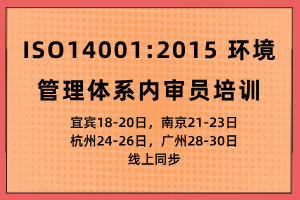 ?1月】ISO14001:2015 环境管理体系内审员培?-宜宾/南京/杭州/广州+线上网络同步培训时间 2024-11-28 2024-11-30结束 培训地点中国线上线下(宜?8-20日,南京21-23日,杭州24-26日,广州28-30日) 培训机构广州兰冠企业管理咨询有限公司 |
