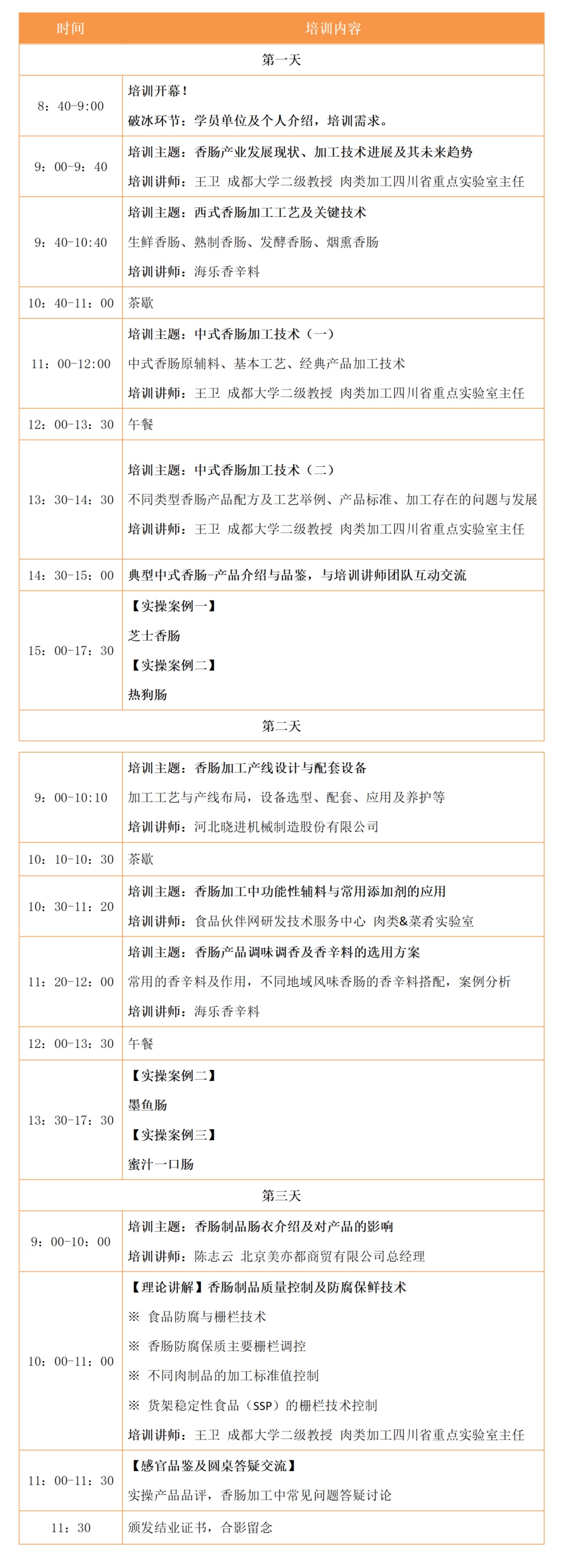 5.产品加工工艺技术、原辅料添加剂、香辛料、肠衣选用、设备产线等系统讲解