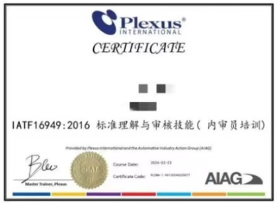 行业认可:AIAG IATF16949内审员培训证书得到各OEM(主机厂)和供应商认可;
