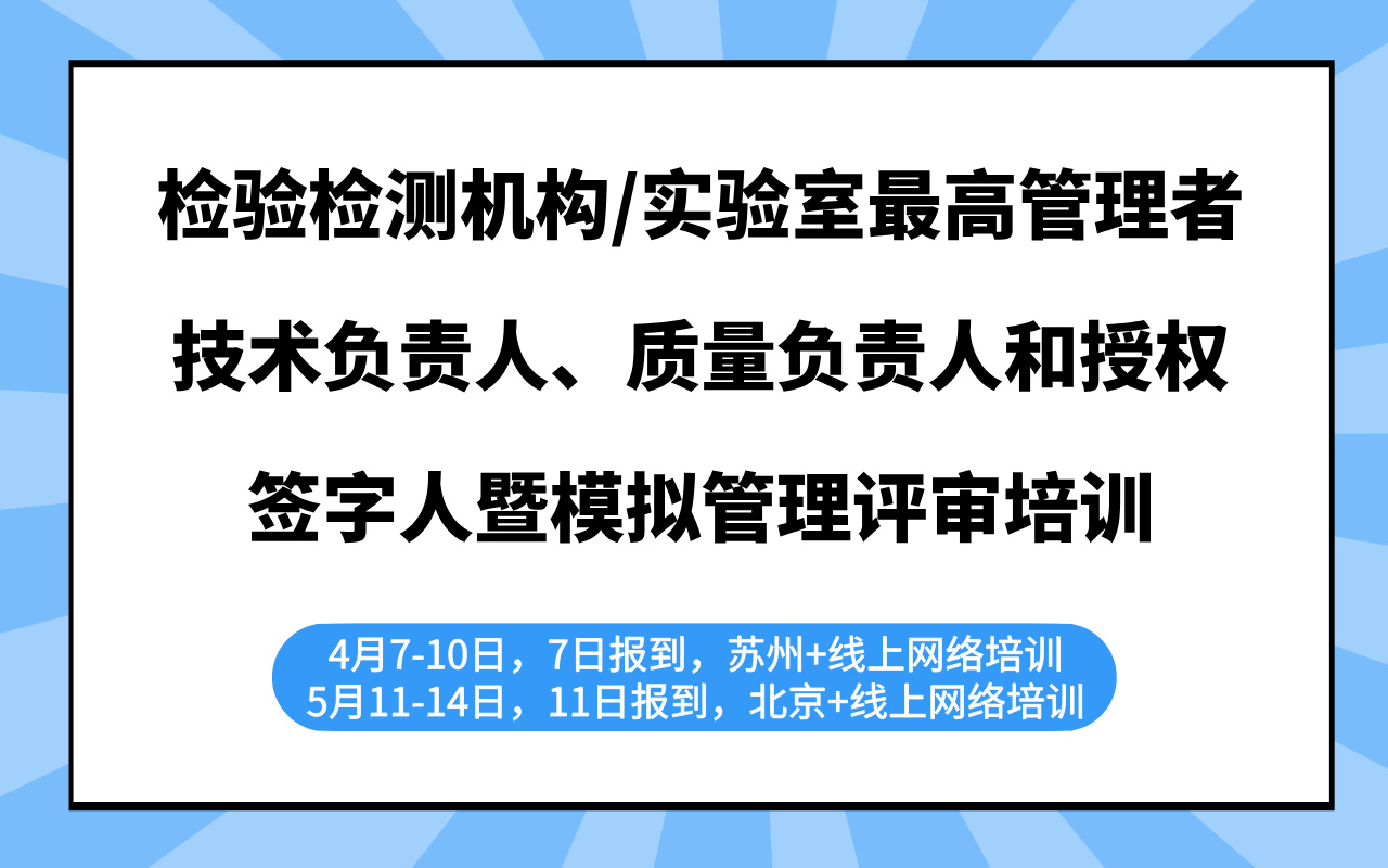 【4月】检验检测机构/实验室最高管理者、技术负责人、质量负责人和授权签字人暨模拟管理评审培训(苏州+线上网络培训)