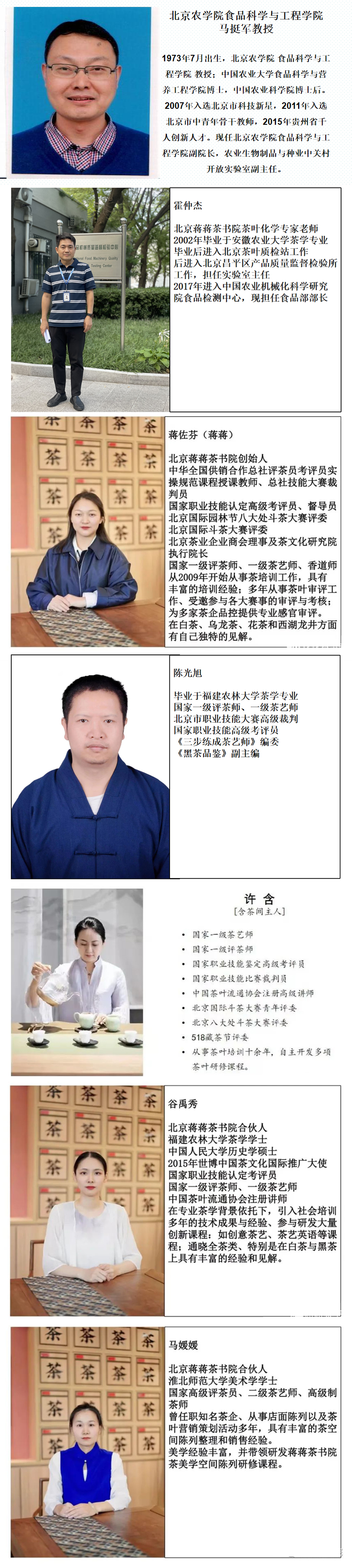 1、专业师资团队,茶行业内资深茶学讲师、知名茶叶审评专家,针对各类茶叶审评进行专题讲解。此次培训引导学员在提升专业职业技能的同时,也将进一步加深大家对行业发展现状的了解和掌握,力所能及的对茶行业发展做出贡献。