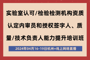 实验室认可/检验检测机构资质认定内审员和授权签字人、质量/技术负责人能力提升培训班(杭州+线上网络直播)