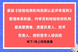 新版《检验检测机构资质认定评审准则》、管理体系转版、内审员和检验检测机构最高管理者、质量负责人、技术负责人、授权签字人培训班(福州/合肥/杭州/哈尔?长春/拉萨/兰州/银川/西宁/乌鲁木齐/线上网络直播(/a>