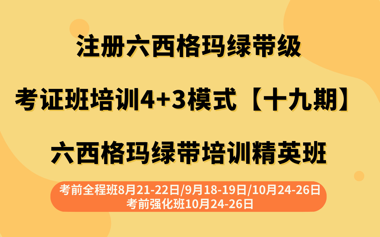 注册六西格玛绿带级考证班培训4+3模式【十九期】---六西格玛绿带培训精英班