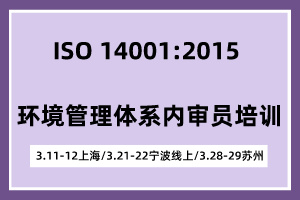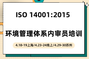 ?月】ISO 14001:2015 环境管理体系内审员培训课程(上海/苏州/宁波/线上网络培训(/a>
