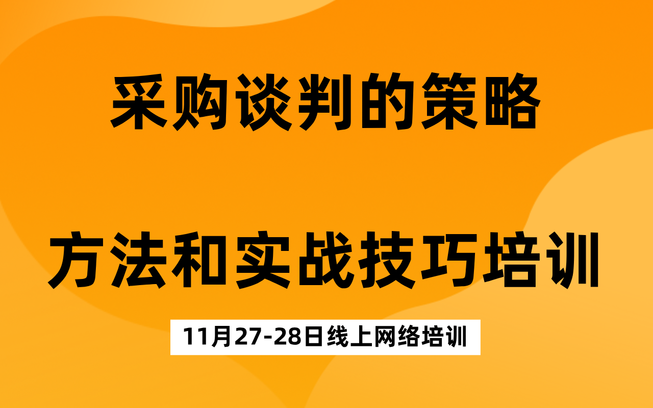 【11月】采购谈判的策略,方法和实战技巧培训(线上网络培训)