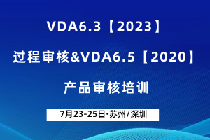 【7月】VDA6.3【2023】过程审核&VDA6.5【2020】产品审核培训(苏州/深圳·线下)