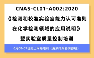 【6月】CNAS-CL01-A002:2020《检测和校准实验室能力认可准则在化学检测领域的应用说明》暨实验室质量控制培训(线上网络培训)