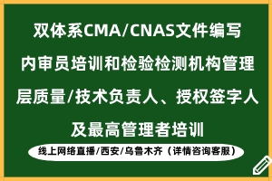 双体系CMA/CNAS文件编写内审员培训和检验检测机构管理层 质量/技术负责人、授权签字人及最高管理者培训(线上网络直播/西安/乌鲁木齐)