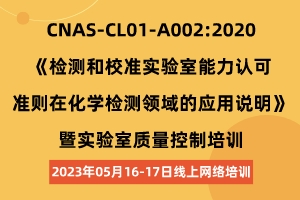 【5月】CNAS-CL01-A002:2020《检测和校准实验室能力认可准则在化学检测领域的应用说明》暨实验室质量控制培训(线上网络培训)