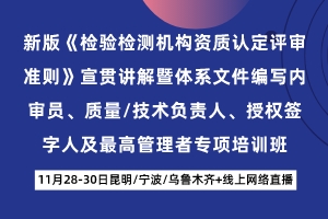 新版《检验检测机构资质认定评审准则》宣贯讲解暨体系文件编写内审员、质量/技术负责人、授权签字人及最高管理者专项培训班(昆明/宁波/乌鲁木齐+线上网络直播)