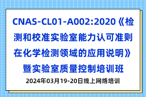 【3月】CNAS-CL01-A002:2020《检测和校准实验室能力认可准则在化学检测领域的应用说明》暨实验室质量控制培训班(线上网络培训)