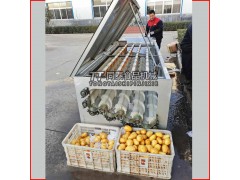 螺旋毛刷辊土豆萝卜红薯清洗机 电动洗马铃薯机器采用螺旋毛刷辊同步转动的形式使白萝卜自转并前行,并通过毛刷将其表面的泥土刷洗干净,再由高压喷水管喷出的水将泥土冲入水箱而达到清洗目的。