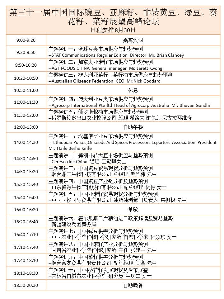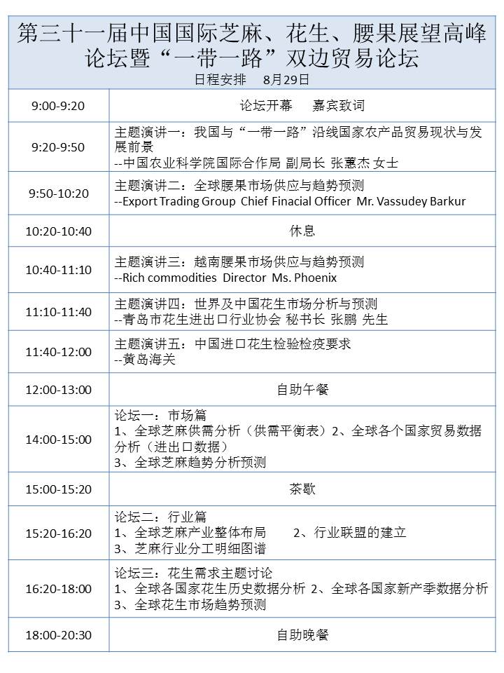 第三十一届中国国际小宗农产品展望高峰论坛会议时间 2018-08-28 2018-08-30结束 会议地点中国中国青岛黄岛嘉年华万丽酒 主办单位9span> 中国农业展望 招商局国际码头(青岛)有限公司 |