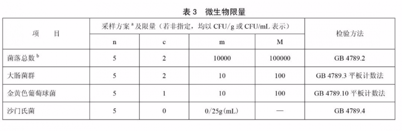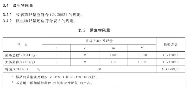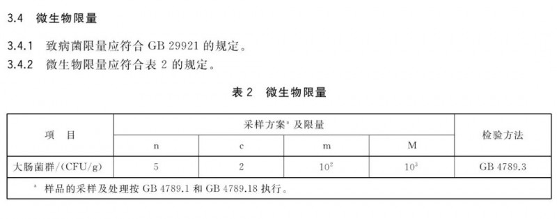 GB 29921-2021 食品安全国家标准 预包装食品中致病菌限量如下: