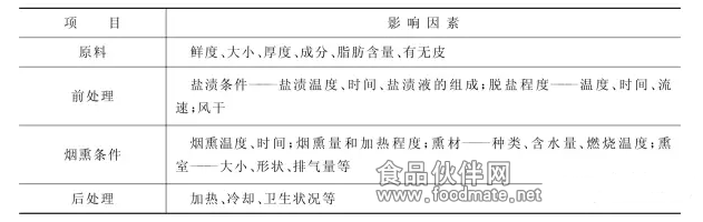 熏材的主要影响前已述及,以下对其他主要影响因素作一概述。